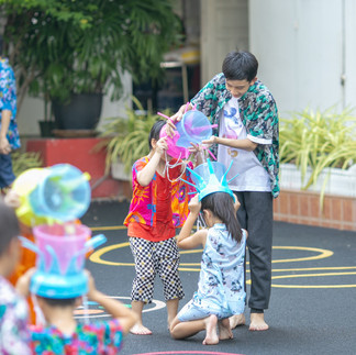 Continuing after lunch with elementary and high school starting their activities while Early Years children have their nap, fun activities include games such as water hat balancing and blindfold pot hitting, as well as making and cooking wontons. Early Years students built sand pagodas and enjoyed some time in the paddling pool before heading home for the holidays. Our older students welcomed back their friends who returned from Canada this week with a traditional Songkran soaking after school! Lots of fun, excitement and celebrations for the New Year.